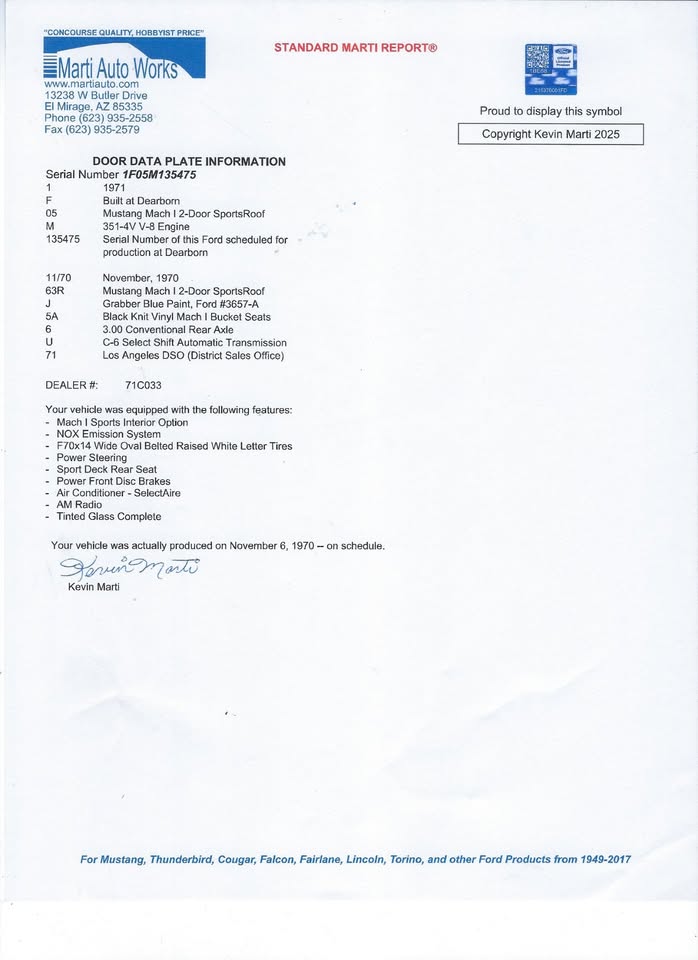 1973 Ford Mustang Mach 1 Fastback V8 Auto VIN 6ZZ000IF05M135475 See Marti Report For All Options Included Mustang is perfectly driveable and is now in stock. Received a poor quality filler and repaint job many years ago, however no body rust is present. Floors, Torque boxes and rails are in good condition. Mach 1 has had New fuel pump, New fuel tank and New master cylinder fitted. A Genuine Mach 1 available for under $40K $39,900 Car ID#648 - Return to Index |