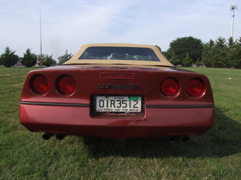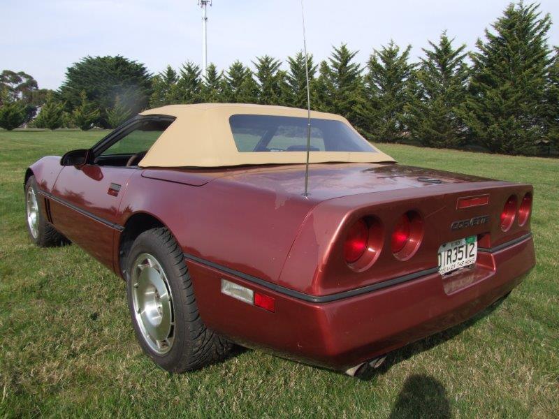 Note there are many other options with this Corvette - original price paid by purchaser in 1987 from the dealer was $36959 US - i have the original purchase docs ie window sticker . The Corvette has new radials fitted.On arrival in Aus I have a new convertible top fitted along with new rubbers >note did not take any photos of Corvette with the top down as day was cold and did not want to damage the new top. Car drives very well strong engine etc -some fading on back of trunk but overall presents quite well.Interior is in good condition -mileage on speed is 68000 miles which are probably correct as the interior is still in good shape allowing for 30 years usage. Selling at a good price.