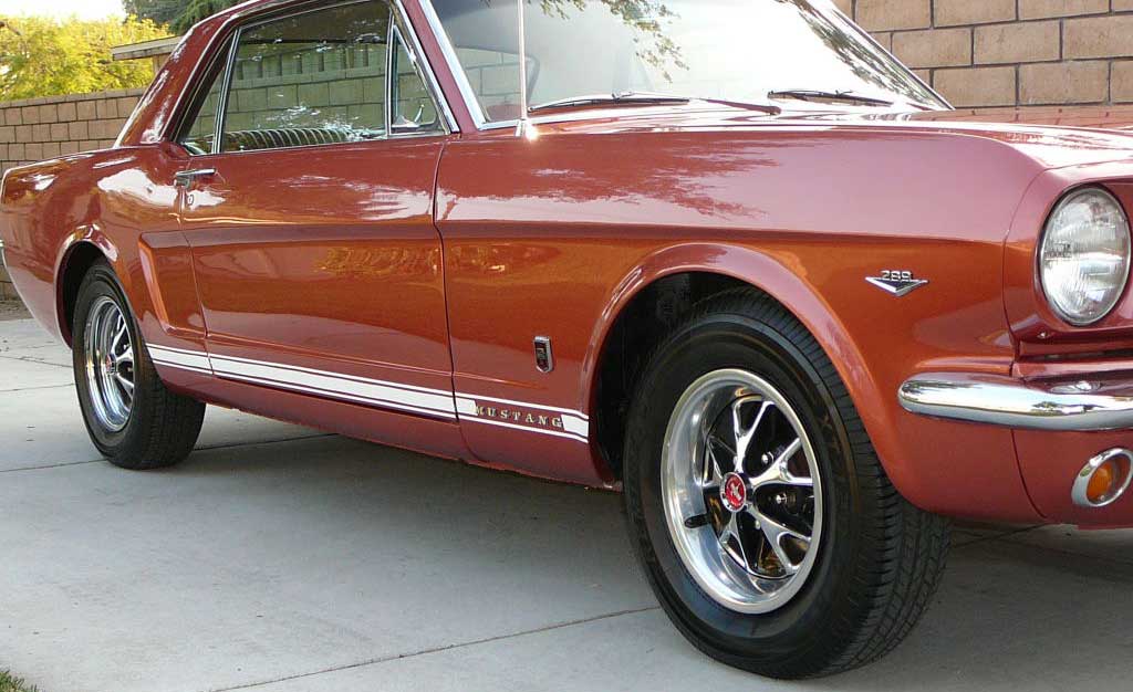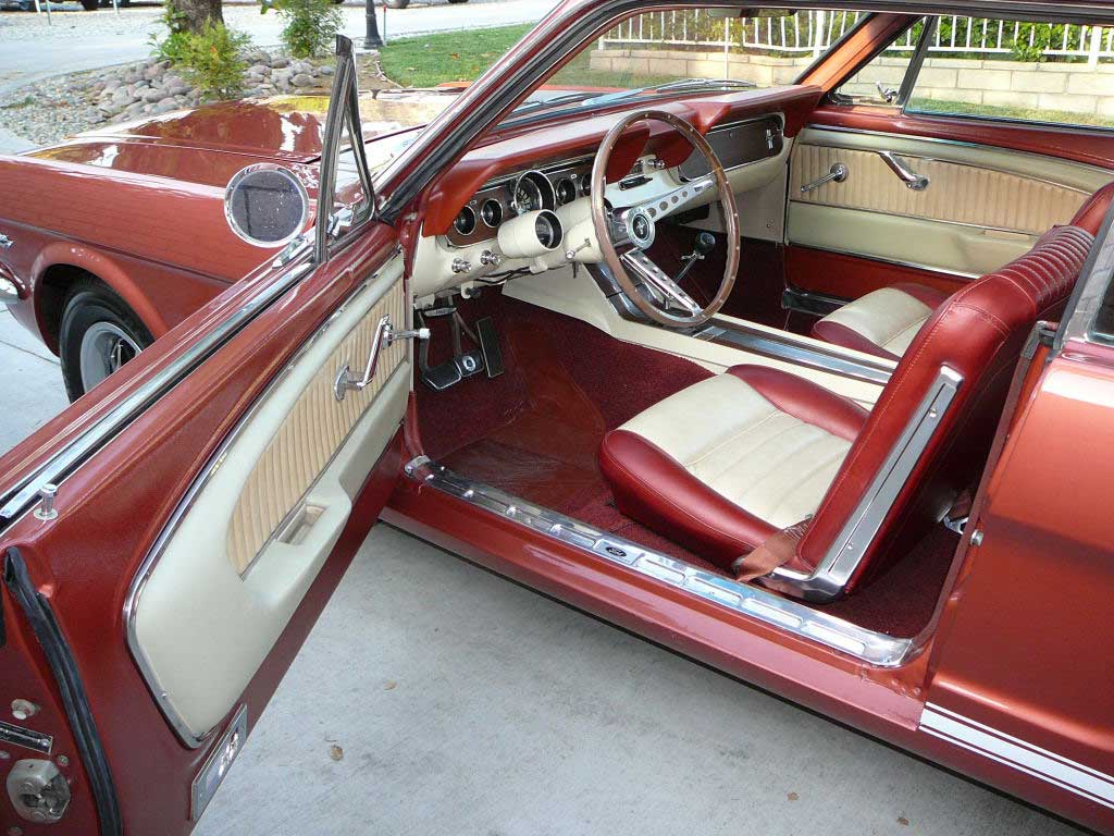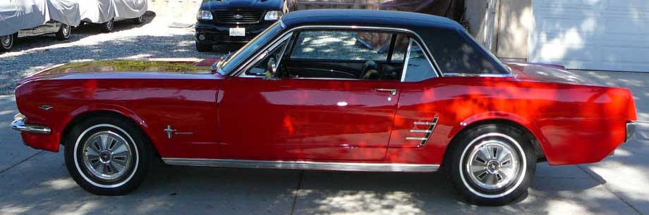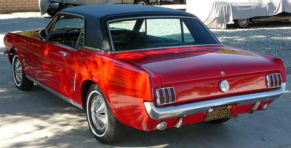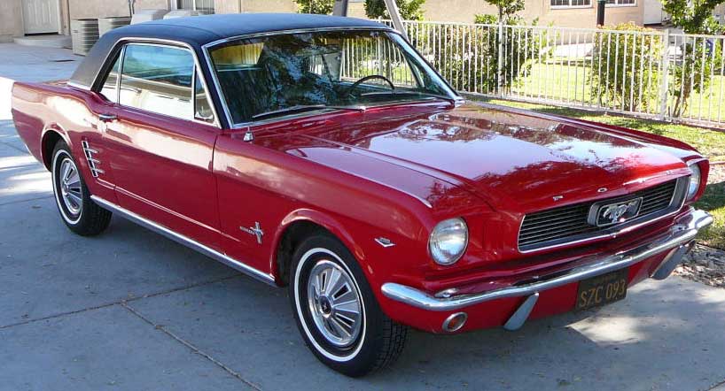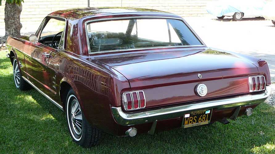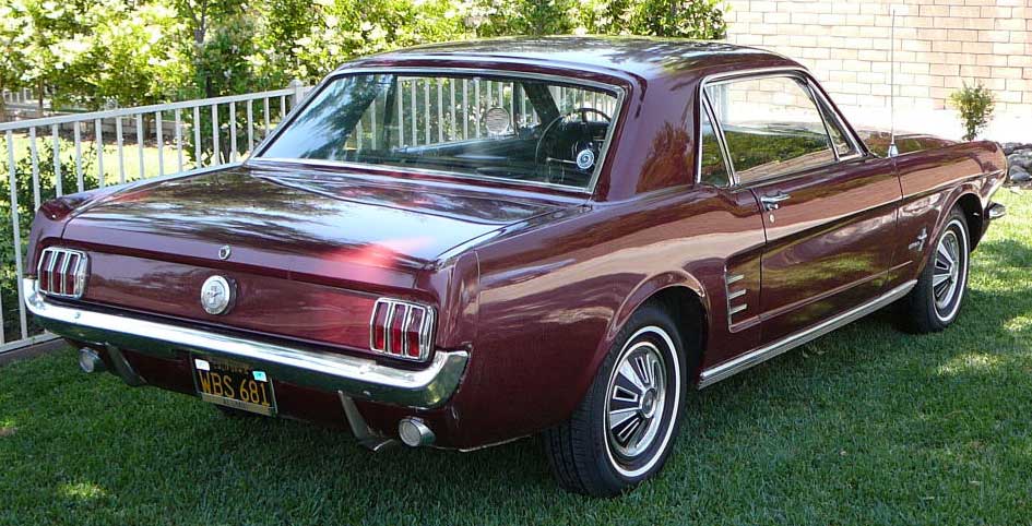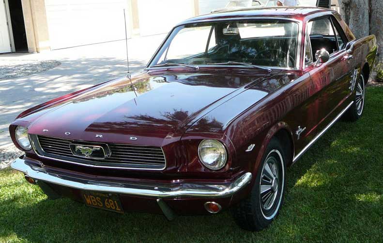 1966 Ford Mustang Coupe 289 V8 Auto VIN 6FO7C333609 Original C Code 289 V8 auto that has power steering and factory air-conditioning. Original Vintage Burgandy Mustang with a nice two stage repaint. Excellent body with original quarter panels and floors. Car looks fine with stock hub caps and wheels, exterior chrome is in good condition. Good driving Mustang. SOLD Car ID#321 - Return to Index |