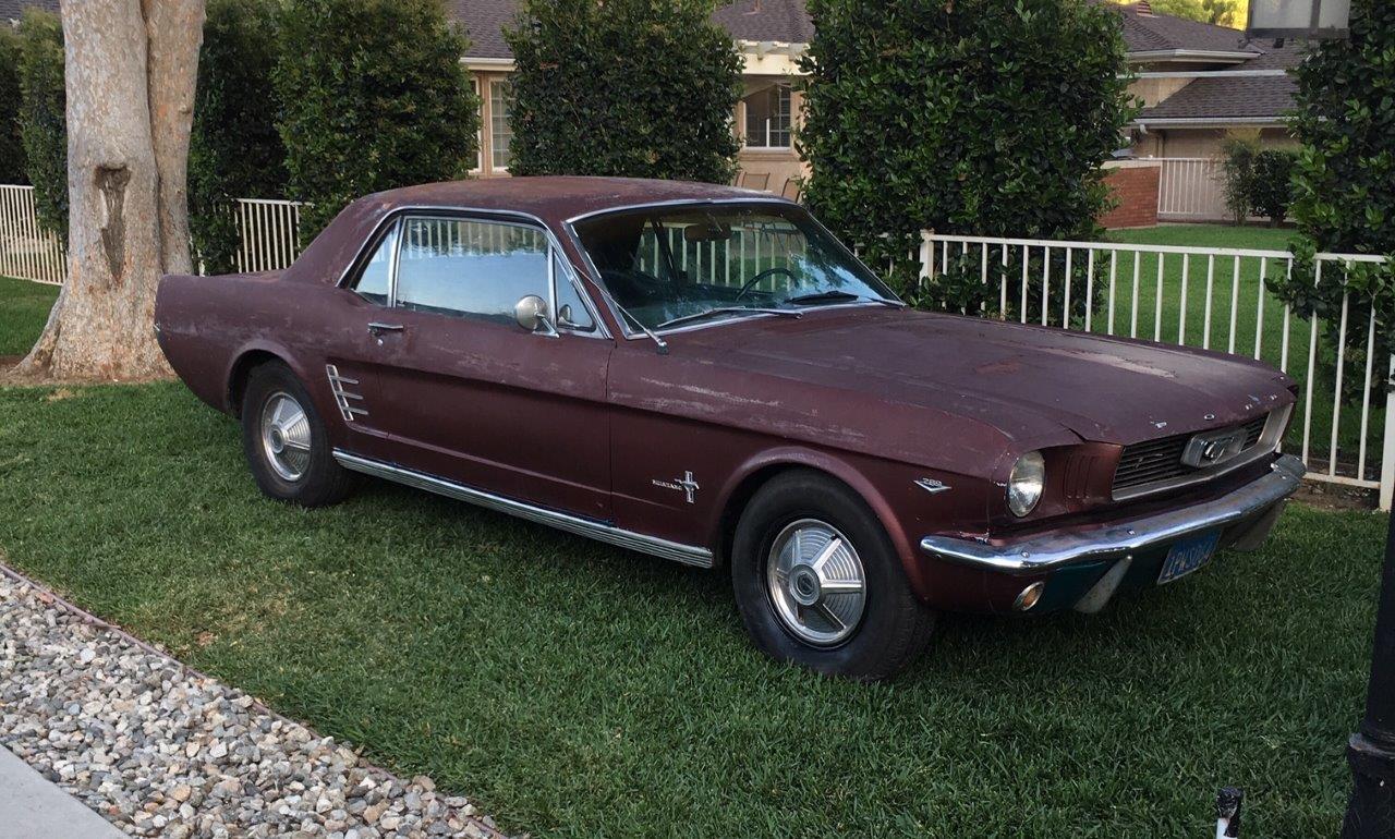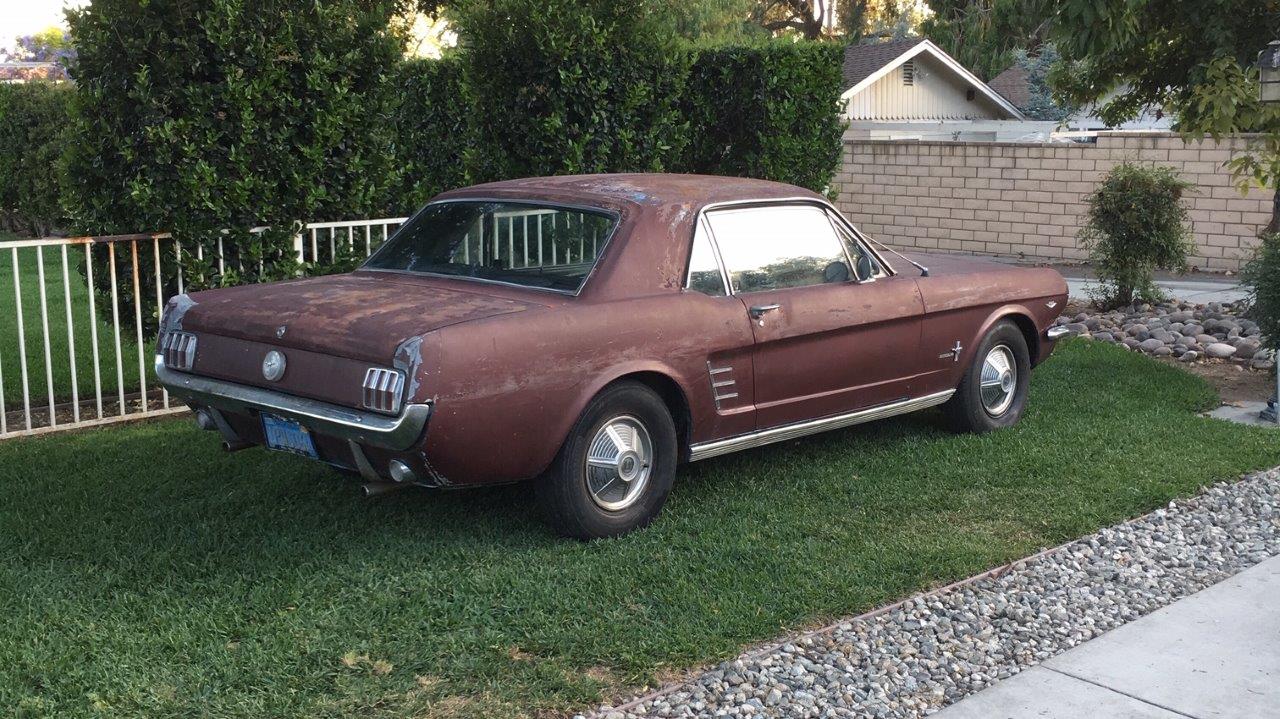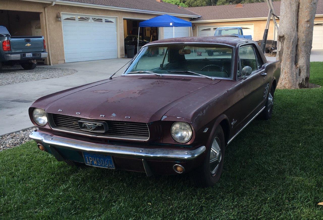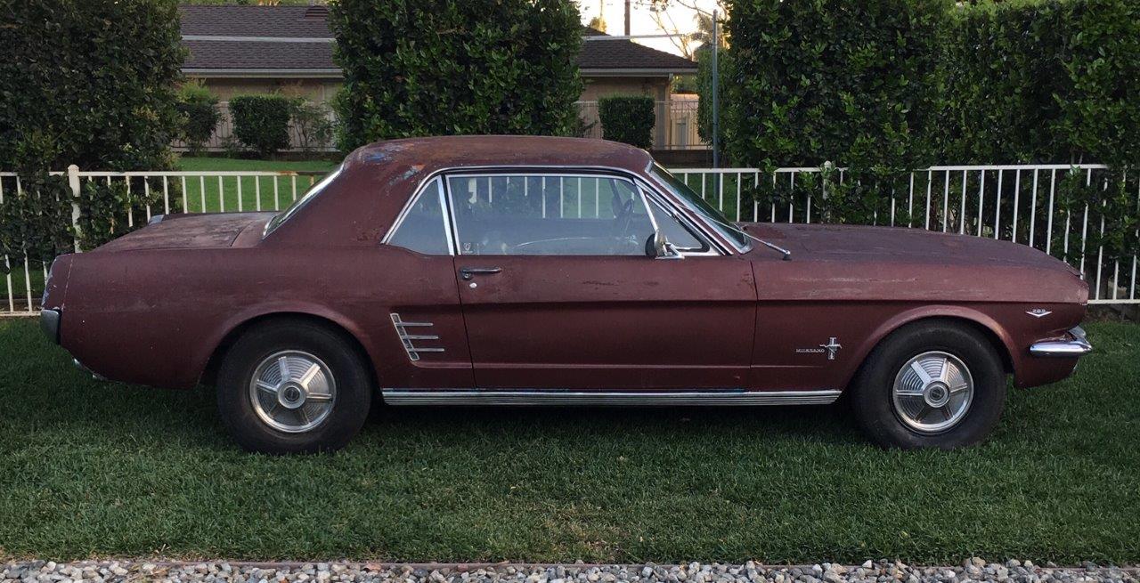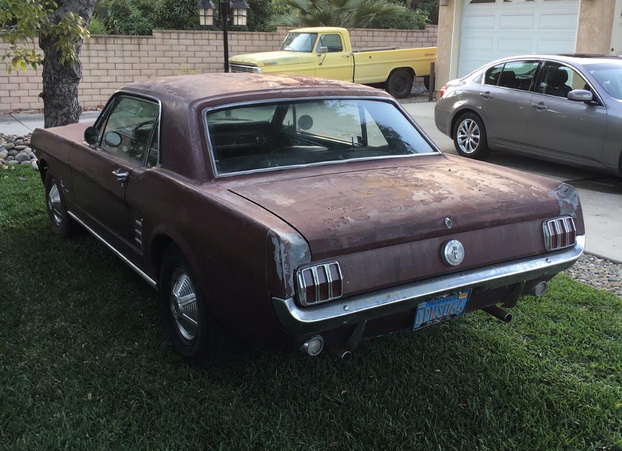 1966 Ford Mustang Coupe 289 V8 auto VIN 6T07C160162 Options 1) power steering 2) factory disc brakes : This is a 1966 Mustang coupe- project car. Equipped with the original 'C' code V8 289 2V engine, C4 auto transmission, power steering, & Kelsey factory disk brakes. Engine does fire & run ok but will need carb, tune up parts, & gaskets. Car sat for 20 years so will need full brakes & fuel system at a minimum. Car was rear ended (prior to current blue paint job) on left rear which impacted frame rail & trunk floor. Left quarter will need re skinned after proper frame pull. Right quarter decent & right frame ok. Car has some rust in rear floors, right hand rear 'C' pillar, & a few other small spots. Not a rusted out back east car since it has been in California for most of it's life, but will need some rust repair as noted. Very cheap car with good options & disk brakes for the project enthusiast. due in late september SOLD Car ID#603 - Return to Index |
