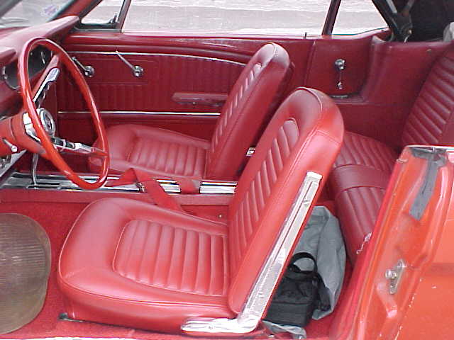 1965 Ford Mustang Coupe A code 289 V8 4V Auto VIN 5RO7A233480 Original 225 HP V8 Mustang that has genuine Kelsey Hayes front disc brakes, manual steering, with a mild performance rebuild on 289 V8 engine. Excellent driving Mustang. Has new red repaint with older black bench front seat which is showing wear. Note new interior kit included in price (new seat covers, front and rear, new door trims and new carpet) all boxes in car. Mustang has a top body with no rust. SOLD Car ID#186 - Return to Index |