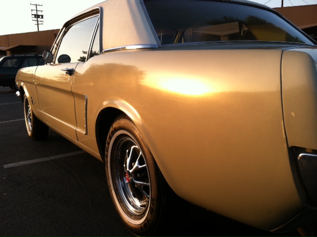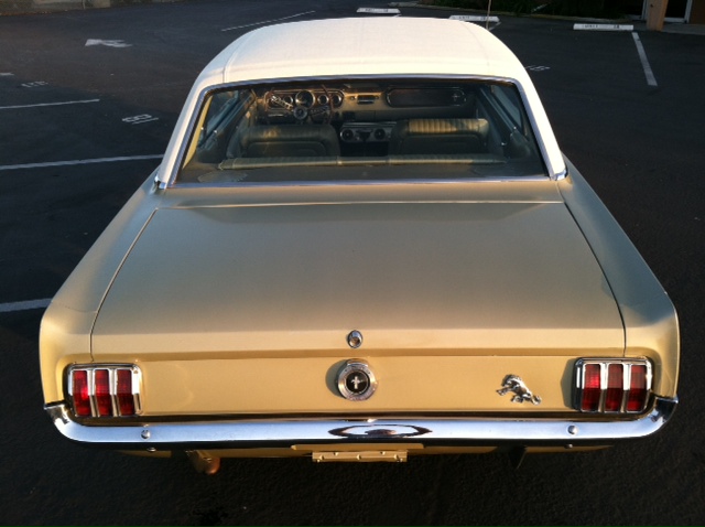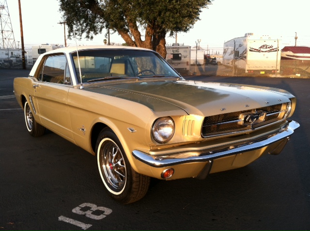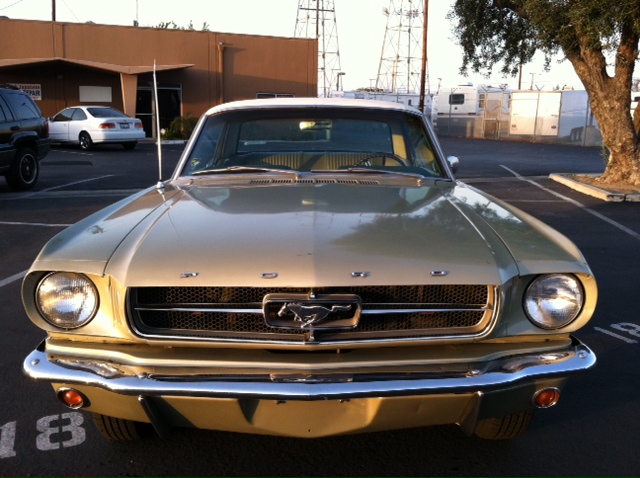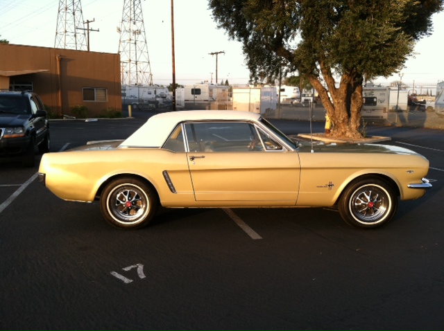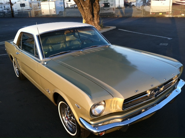 1965 Ford Mustang Coupe 289 V8 Auto VIN 5R07C204347 Original colour is Honey Gold - car has had one repaint and is quite presentable for a daily driver. Options include 1) power Steering 2) factory air conditioning 3) deluxe interior (Pony) Very nice straight unmolested Mustang - ideal family car. Interior is in nice shape and engine bay is all original. Mustang runs and drives well - auto shifts good and lights, blinkers, heater, horn etc are in working condition. SOLD Car ID#455 - Return to Index |