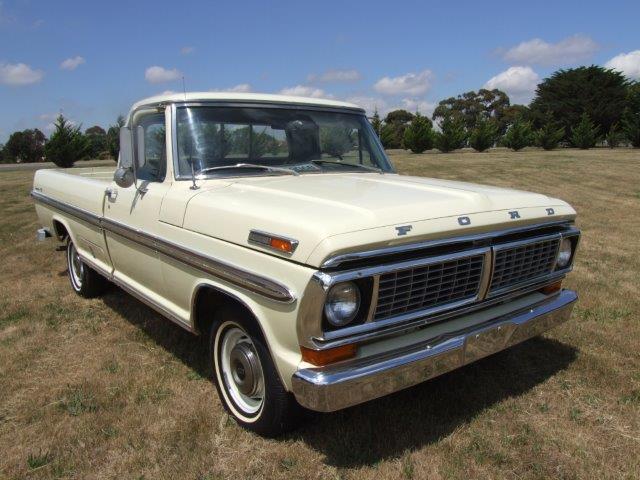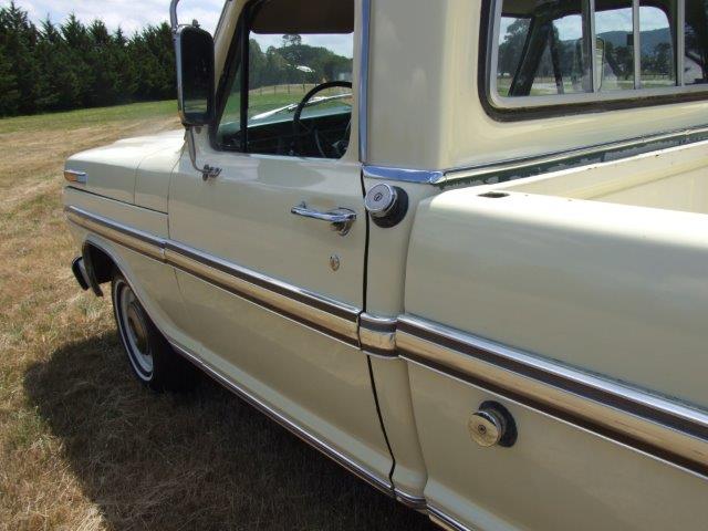 1970 Ford F100 XLT Ranger V8 Auto VIN F10HRJ50847 Here we have an excellent example of a big block F100. The truck is in top condition and drives strong. Much work has been done on the truck -A/C blows cold as compressor etc is all new. Other new parts include, A/C hoses and condenser plus dryer, radiator, power steering pump, water pump, alternator, carby, distributor and leads etc. SOLD Car ID#534 - Return to Index |