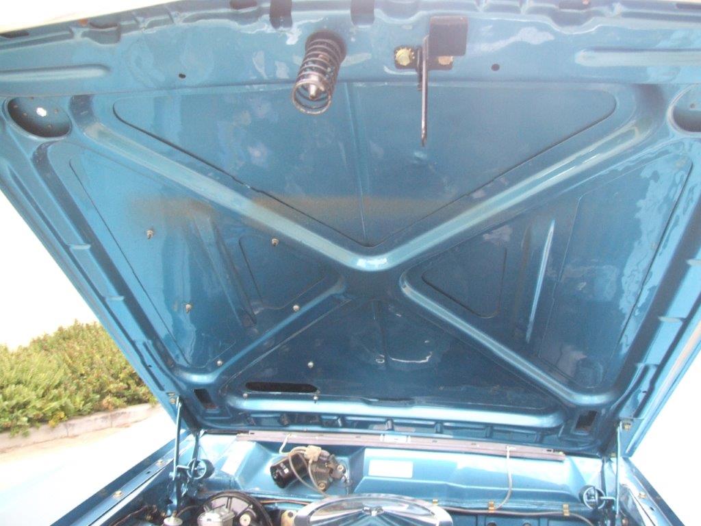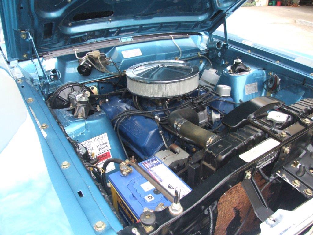 Extremely correct under the bonnet the expensive stuff is all there. Matching numbers engine and trans correct 390 chrome top air cleaner and chrome rocker covers. Mach 1 was originally lime gold metallic, has had a drivers quarter panel replaced, has a damaged right front fender but a good original replacement one provided.